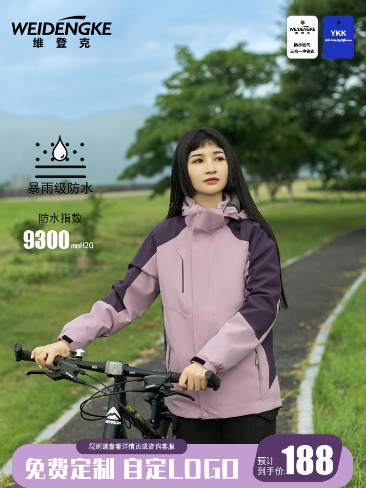 昕衣季冬季冲锋衣定制男女三合一两件套加厚登山服衣裤定制logo男