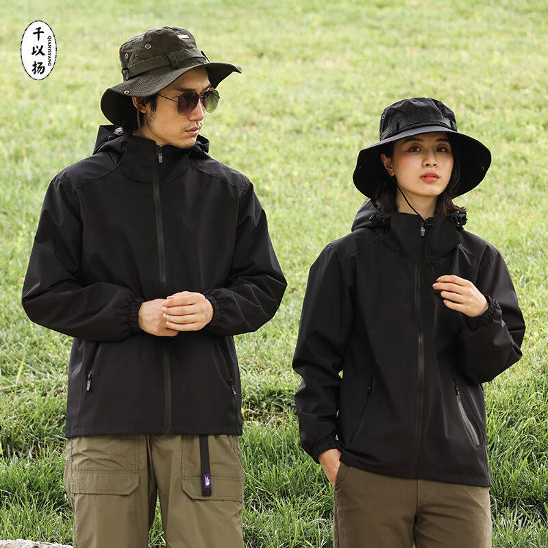 【熊猫】骆驼黑胶防晒防紫外线单层冲锋衣男女款2024防水硬壳外套