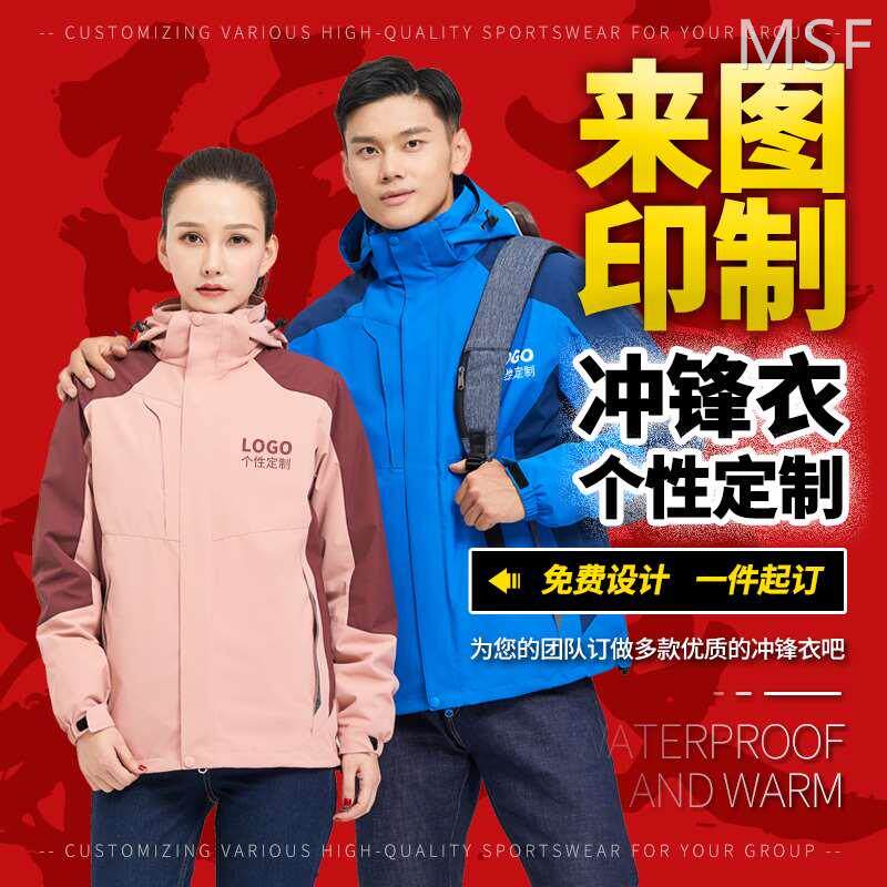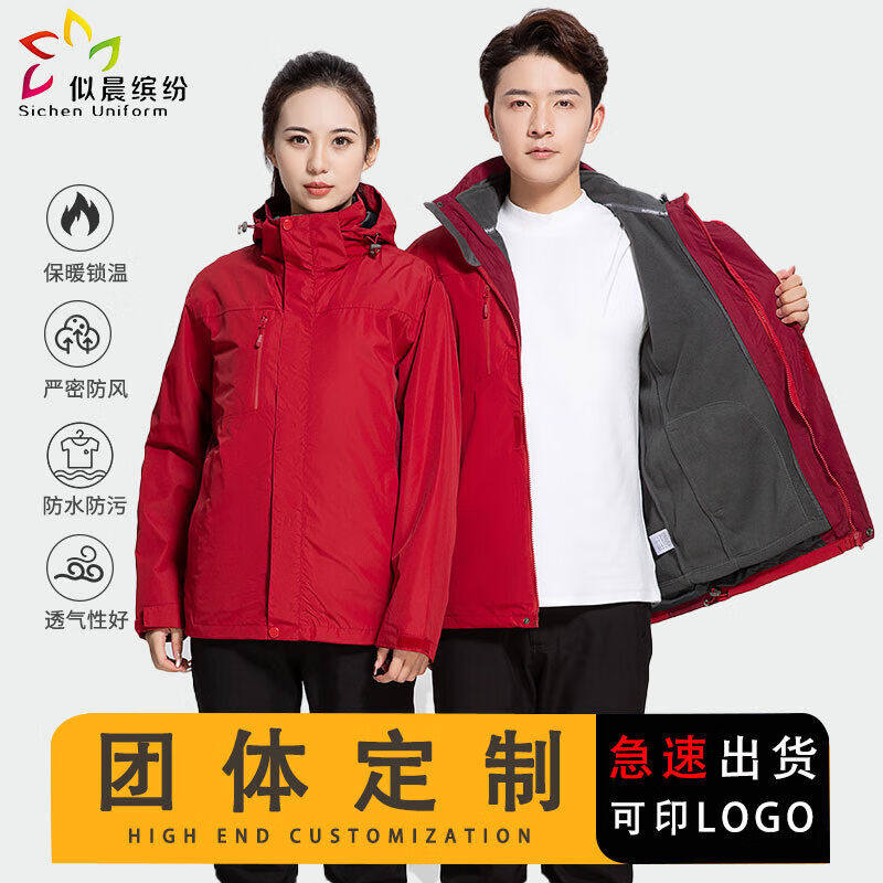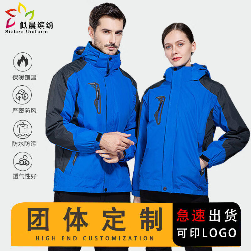 似晨缤纷冲锋衣定制工作服印logo印字冲锋衣P男三合一保暖外套男