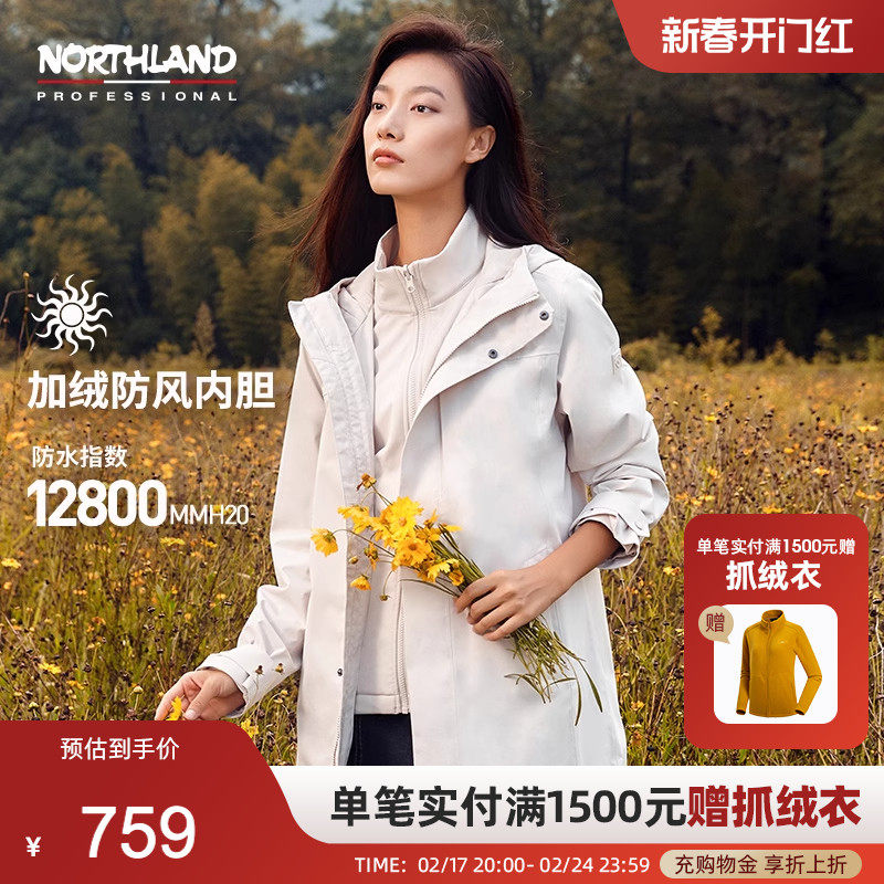 【北风】骆驼户外羽绒服冲锋衣男女秋冬三合一加绒加厚滑雪服外套
