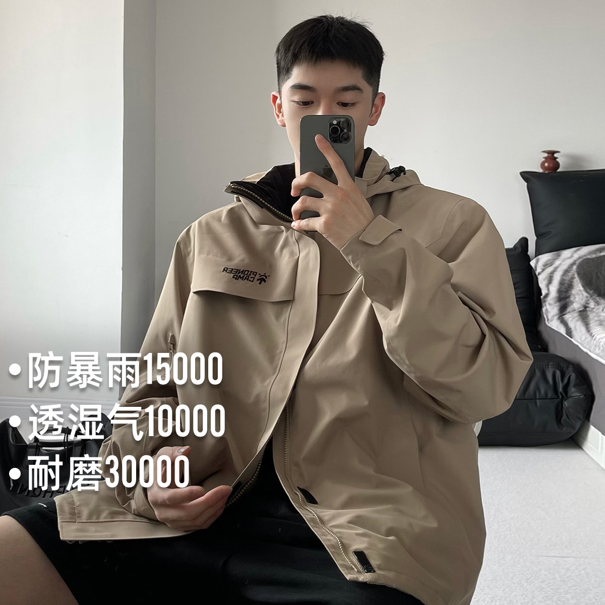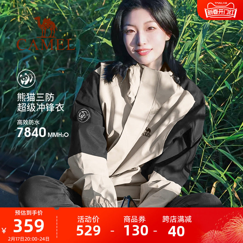 骆驼熊猫系列三防冲锋衣男女单层硬壳春秋外套防水防风户外登山服