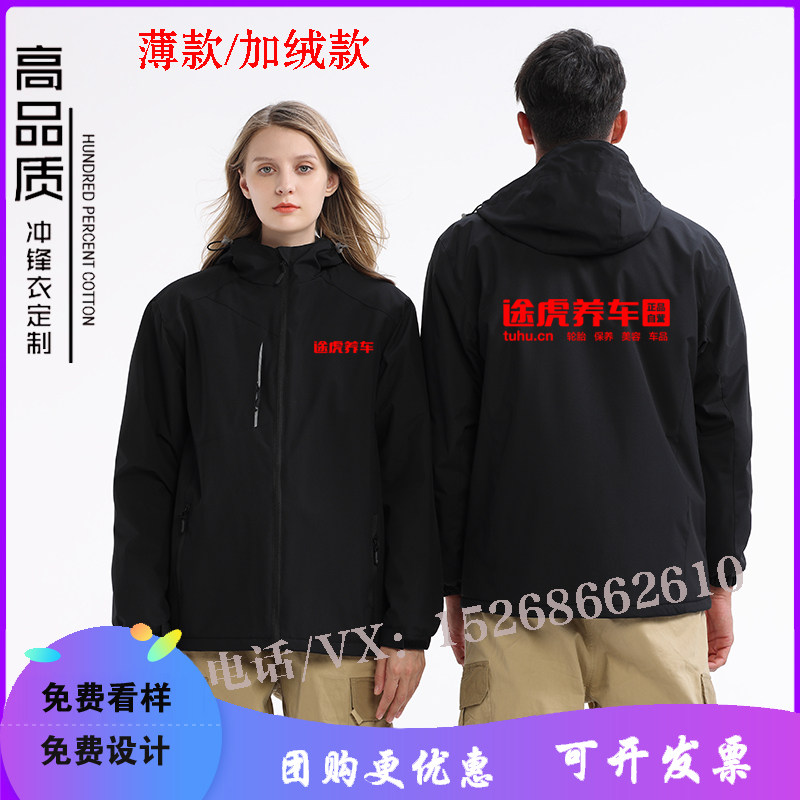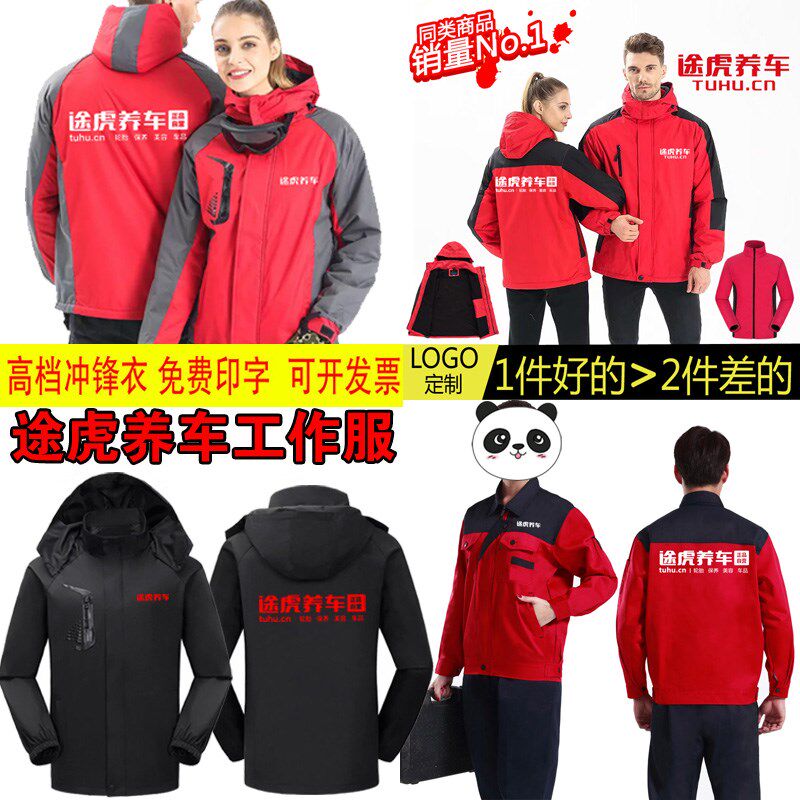 秋冬途虎养车工作服长袖外套定制冲锋衣装饰汽修工人衣服男印LOGO