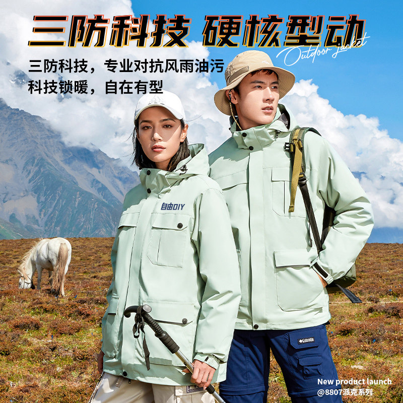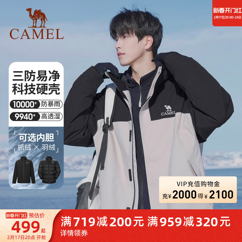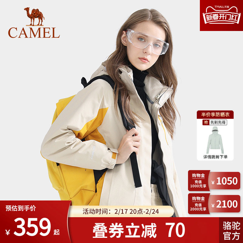 骆驼冲锋衣男女外套三合一防风防水拼色可拆卸户外暴雨级登山服