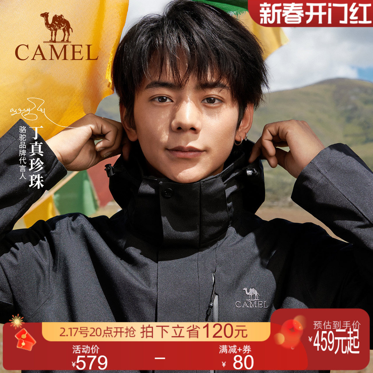[丁真同款]骆驼幻影黑冲锋衣男女三合一羽绒服外套户外进藏登山服