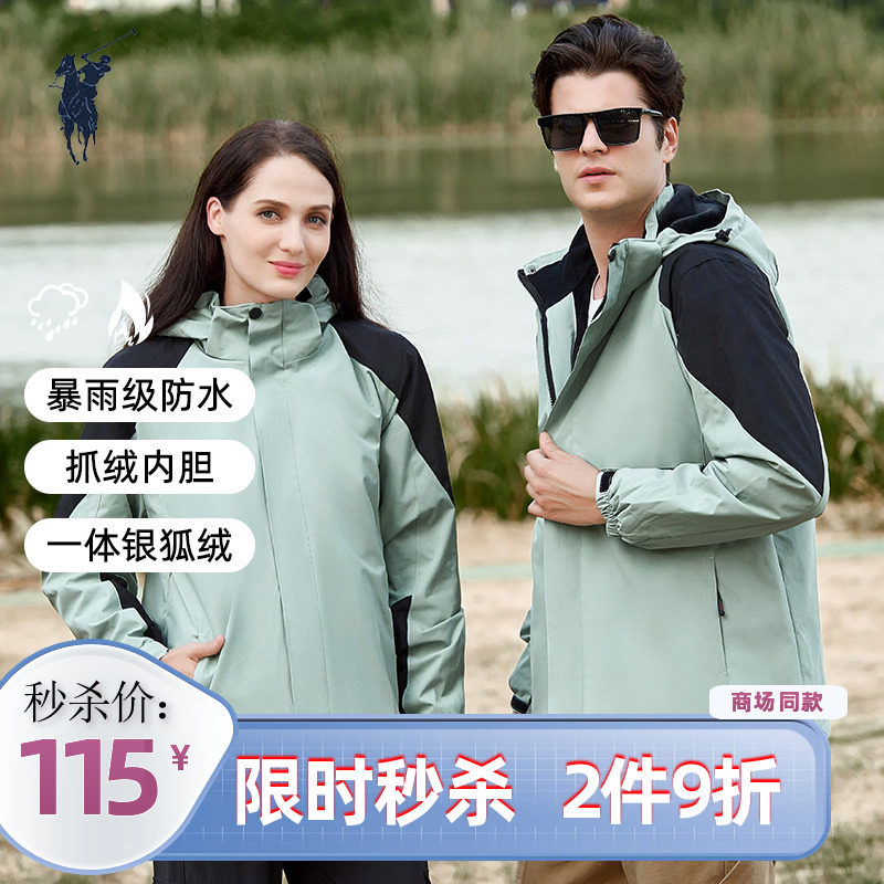 Polo保罗冲锋衣男女外套情侣三防防风防水登山服内里300克摇粒绒