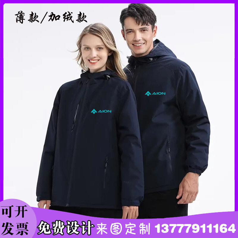新款秋冬广汽埃安4S店工作服定制汽车销售冲锋衣加绒外套印字LOGO