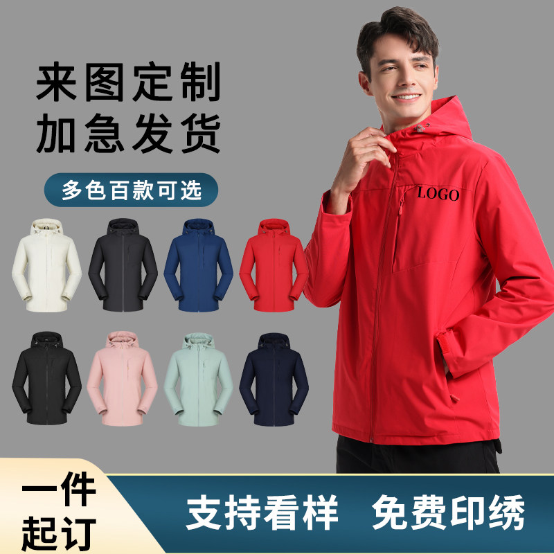 冲锋衣工作服外套加绒定制logo户E外团体服装秋冬季保暖工装男刺