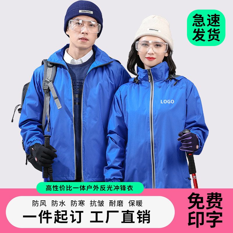 冲锋衣定制工作服印字logo秋冬加绒外套定做长袖户外工衣服装防水