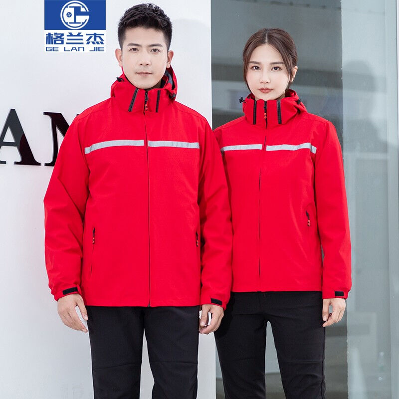 冲锋衣定制logo工作服男女工装防风防水保暖电信快递可拆卸两件套