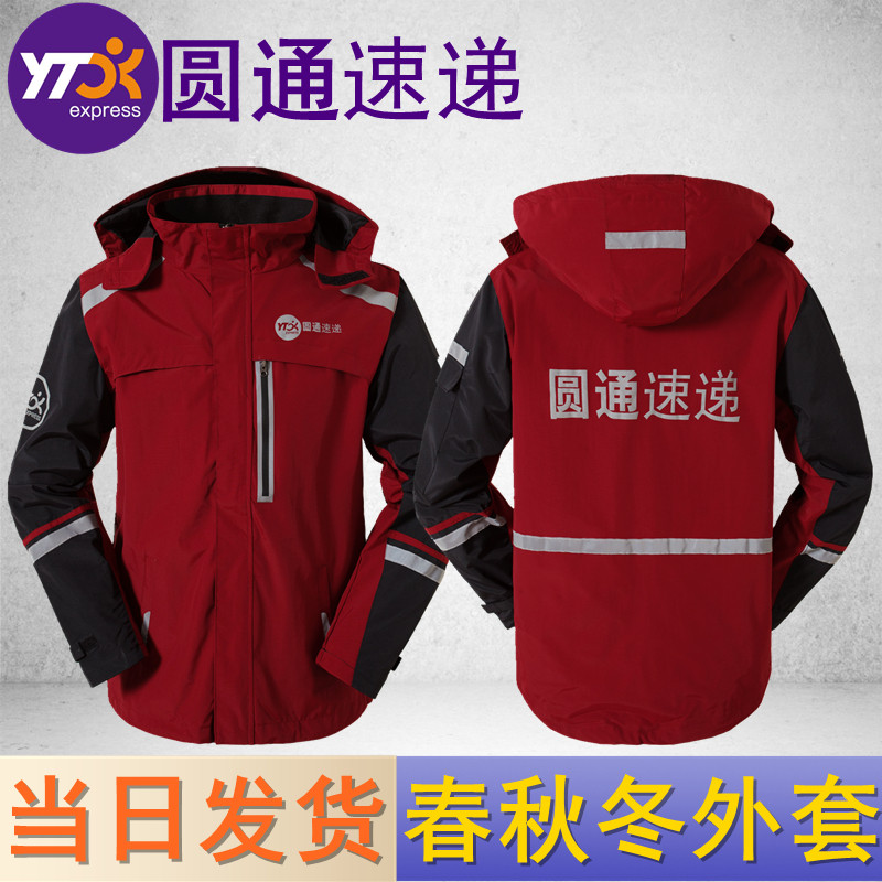 圆通速递工作服冬季外套冲锋衣圆通快递春秋冬天防风长袖保暖工衣