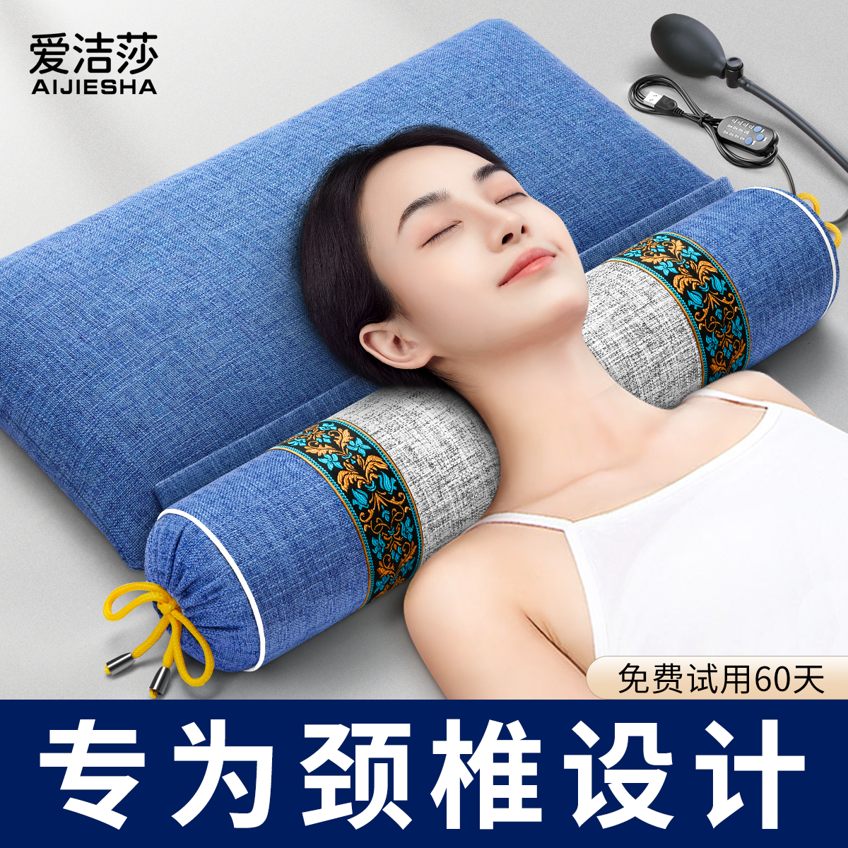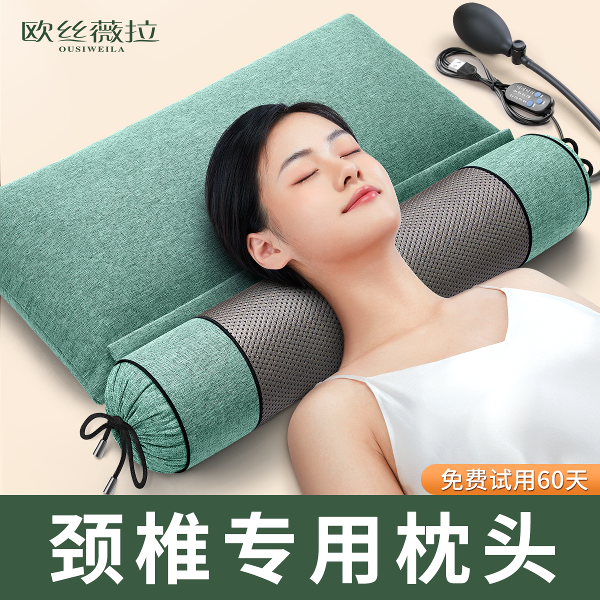 颈椎枕头护颈椎助睡眠睡觉专用艾草荞麦修复决明子圆柱加热护劲椎