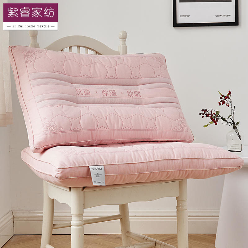 决明子全棉磁石抗菌刺绣枕头一对装荞麦学生单双人成人护颈椎枕芯