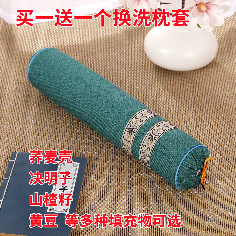 颈椎枕头专用荞麦皮圆柱护颈枕睡觉修复决明子加热硬糖果形助睡眠