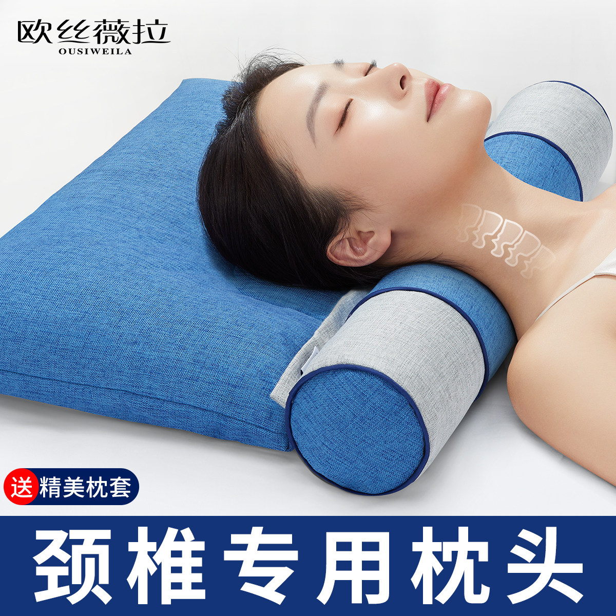 颈椎枕头护颈椎助睡眠睡觉专用艾草荞麦修复决明子圆柱按摩护劲椎