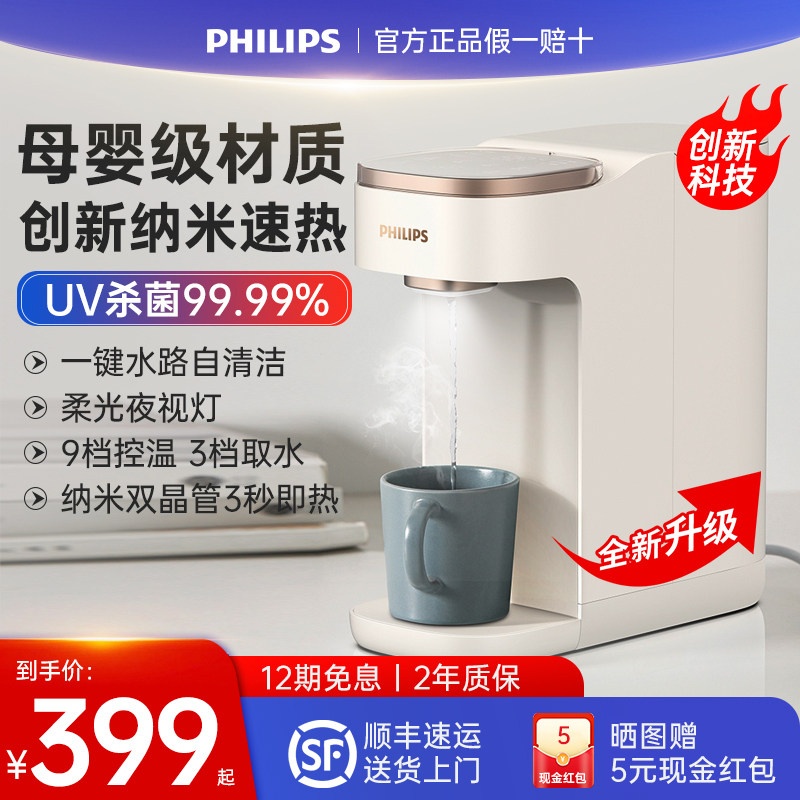飞利浦家用即热式饮水机小型速热桌面饮水器纯净水加热直饮一体机