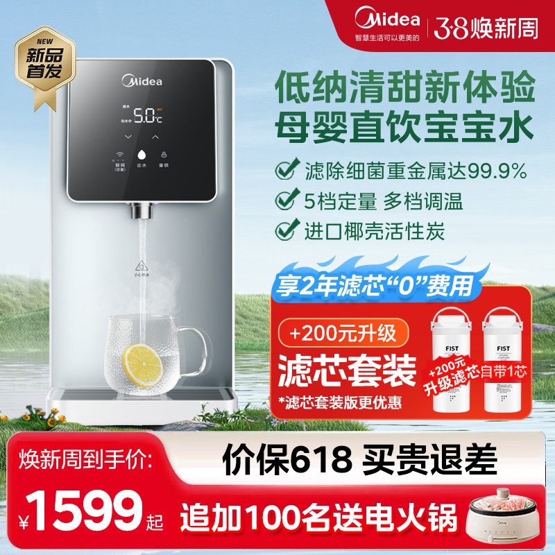 美的台式净饮机加热一体净水器家用直饮过滤即热式饮水机官方魔方