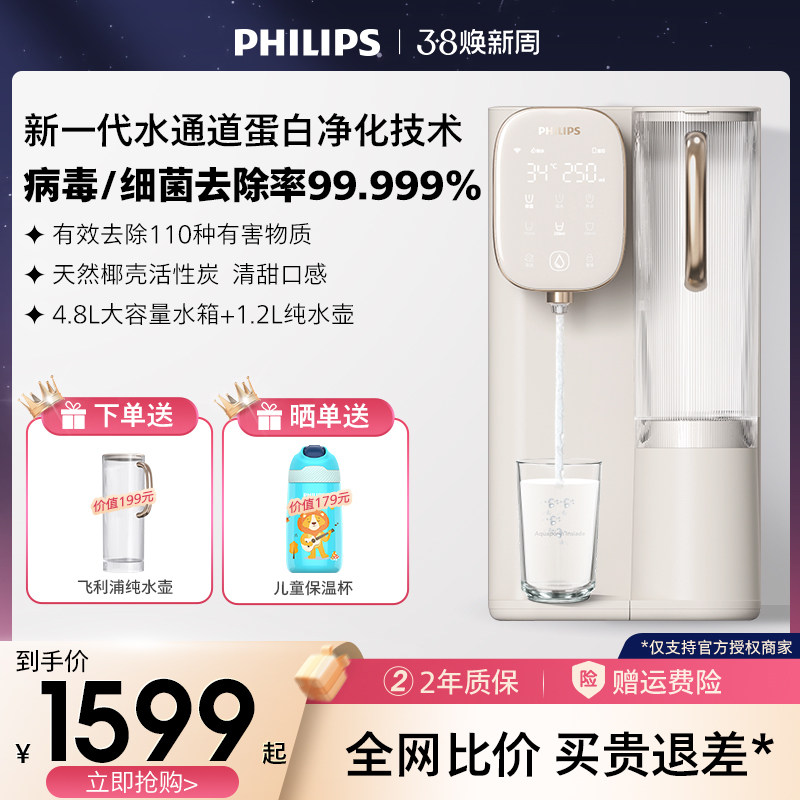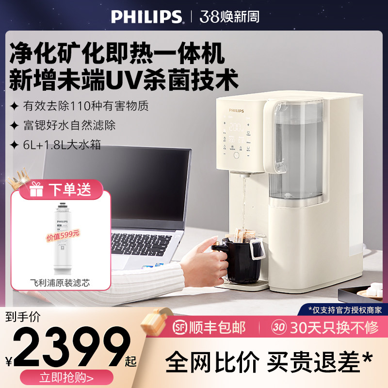 飞利浦矿泉直饮台式免安装净水器家用即热式饮水机加热一体净饮机