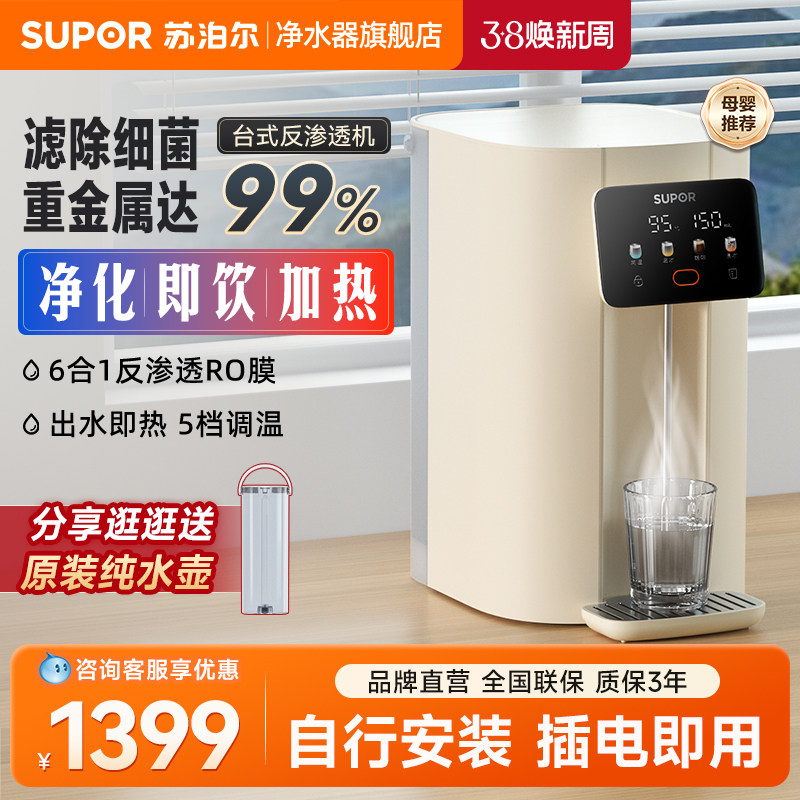 爱贝源净水器家用直饮加热一体机台式智能即热饮水机免安装净水机