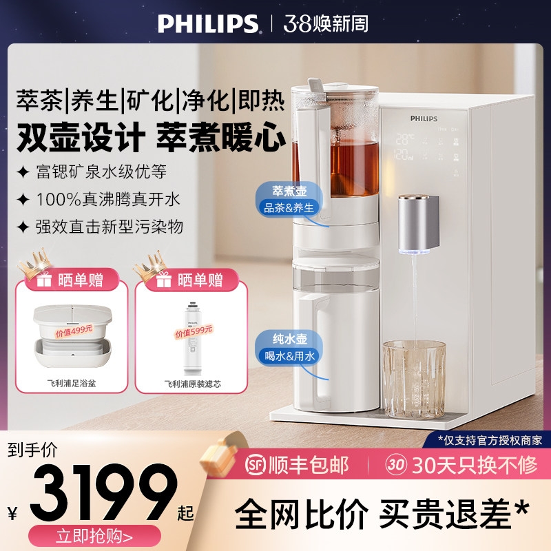 飞利浦免安装净水器双壶萃煮茶吧即热饮水直饮养生一体净饮机6890
