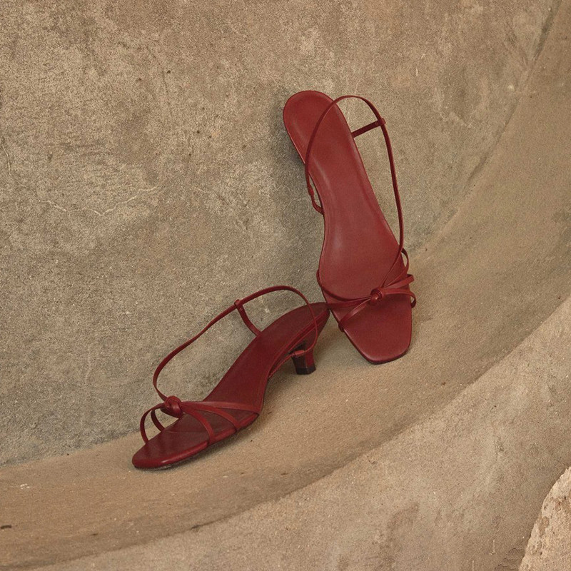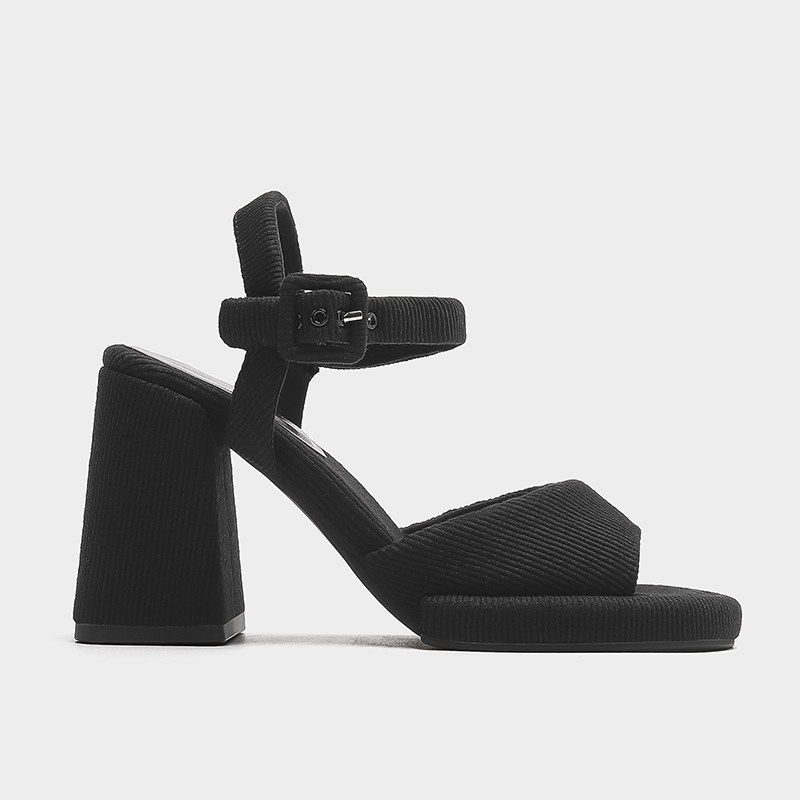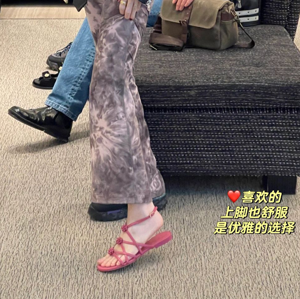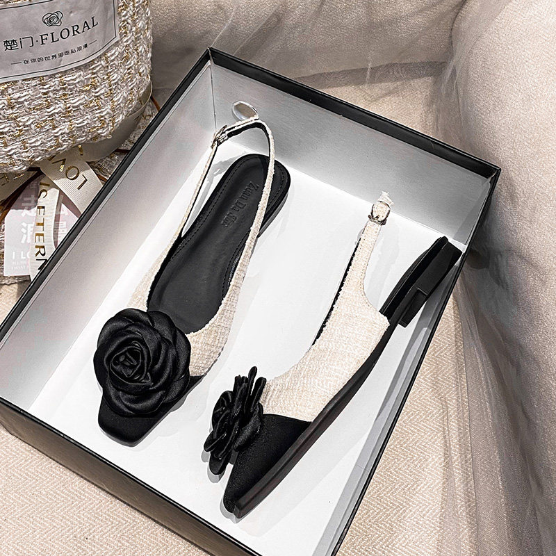 小池在首尔2023年春夏尖头浅口粗高跟ins仙女风绑带包头罗马凉鞋