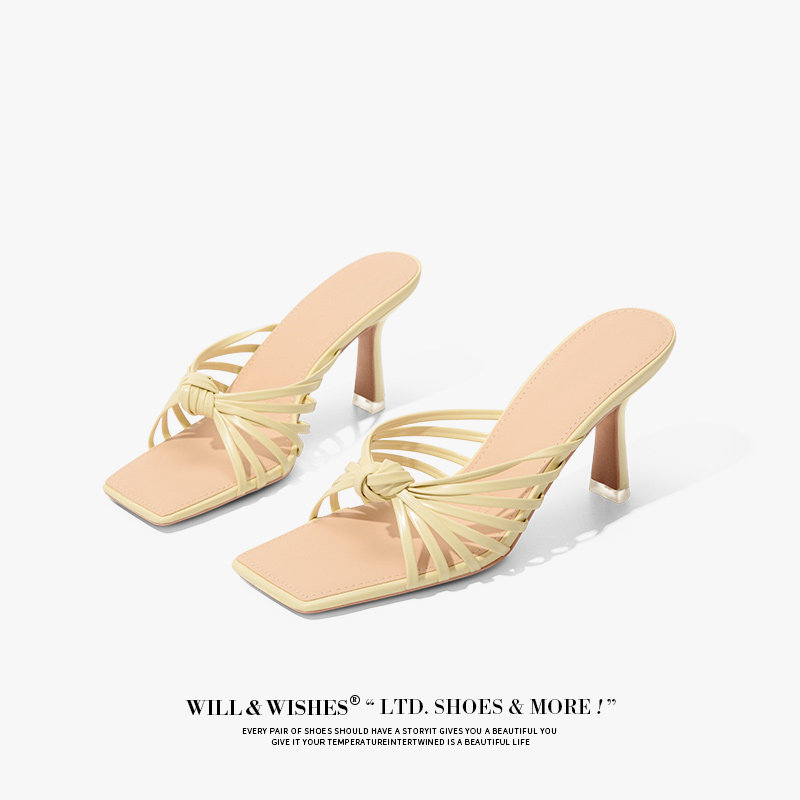 WILLWISHES 法式女鞋2024新款凉鞋女夏细跟细带高跟鞋拖鞋女外穿