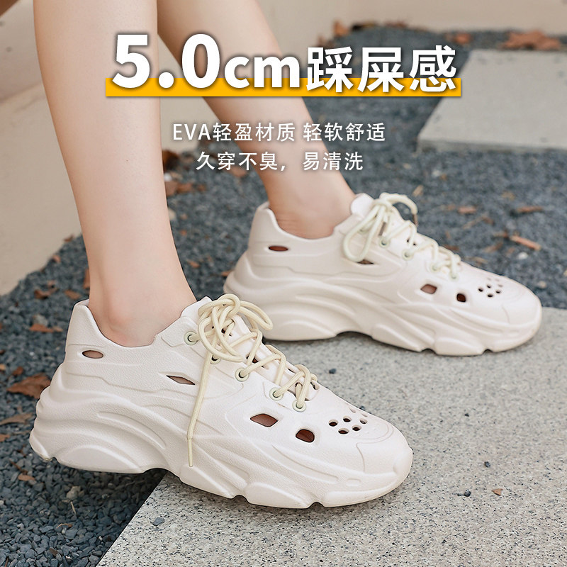 厚底洞洞鞋女夏季护士2023网红新款可爱包头拖鞋大头外穿沙滩凉鞋