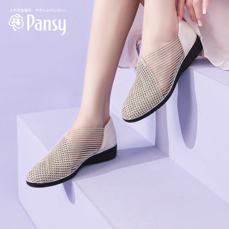 Pansy日本女鞋夏季镂空透气编织凉鞋休闲平底单鞋舒适防滑妈妈鞋