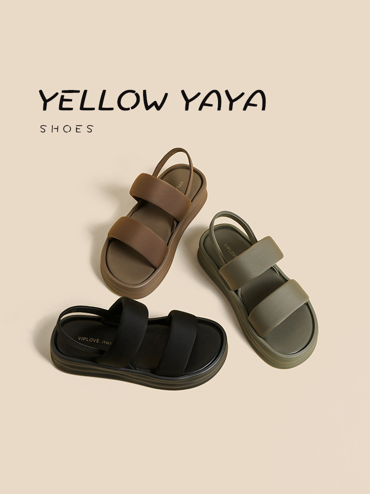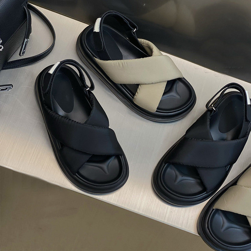 厚底交叉带凉鞋女夏外穿2023新款休闲百搭露趾魔术贴软底罗马鞋潮