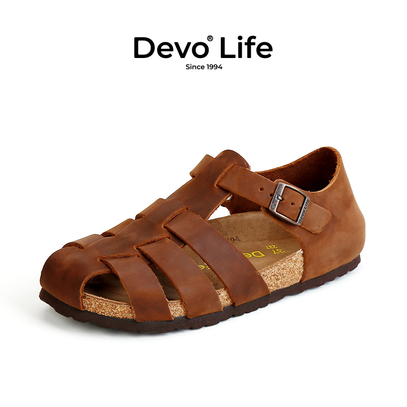 Devo/的沃软木凉鞋女休闲平跟搭扣时尚休闲反绒绒面情侣凉拖2627
