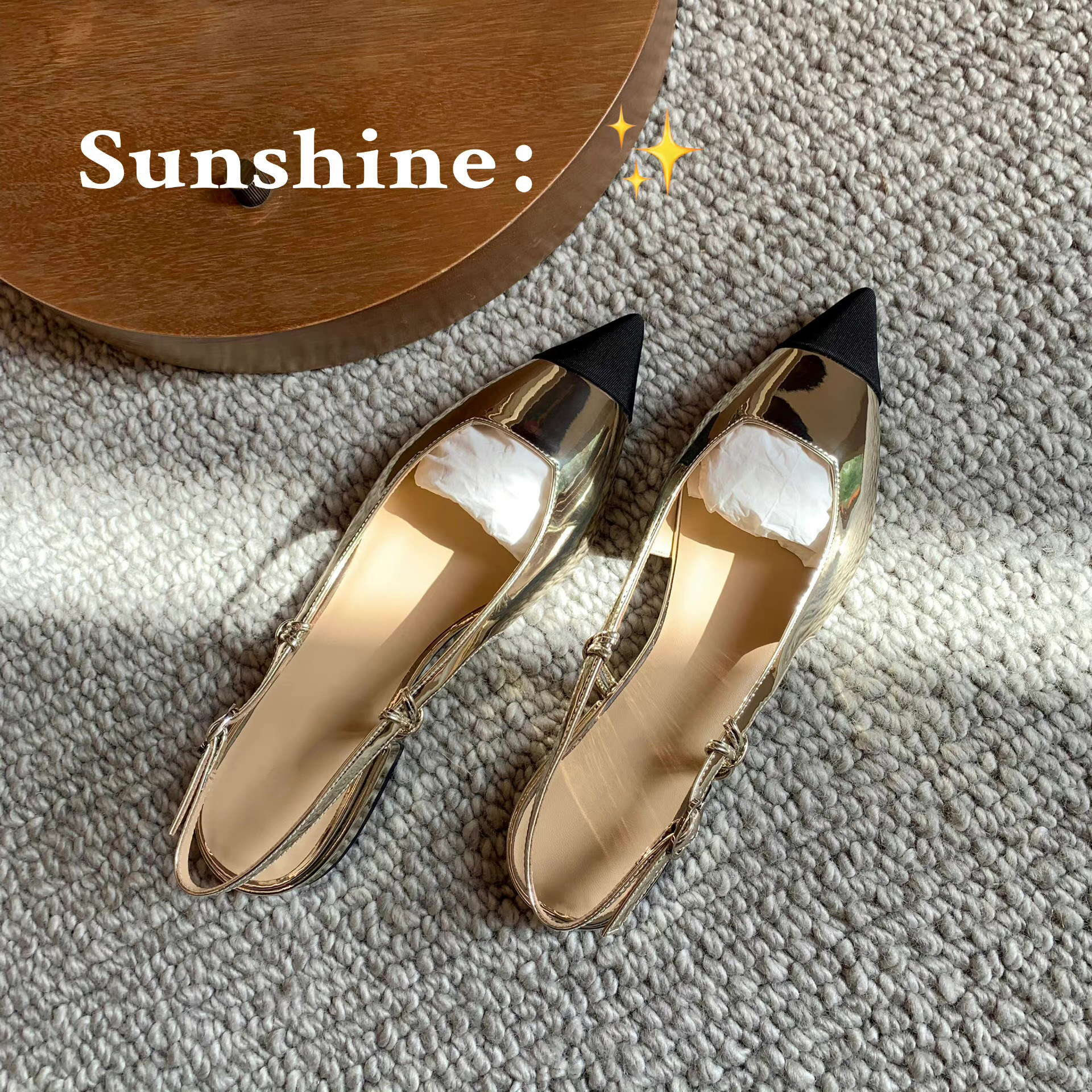 羊皮版~2023新款法式夏季尖头单鞋高跟后空细跟凉鞋女真皮小凉鞋