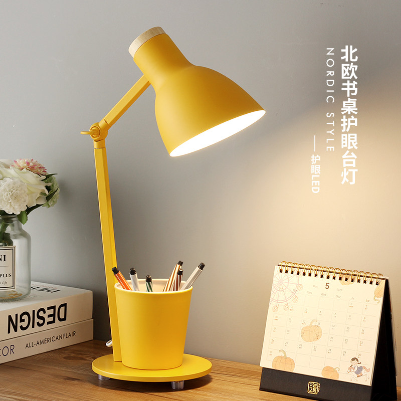 北欧创意笔筒ins少女台灯书桌插电式护眼学习宿舍寝室简约夜读灯