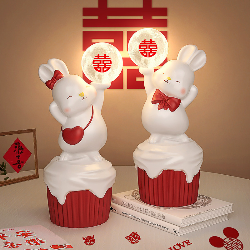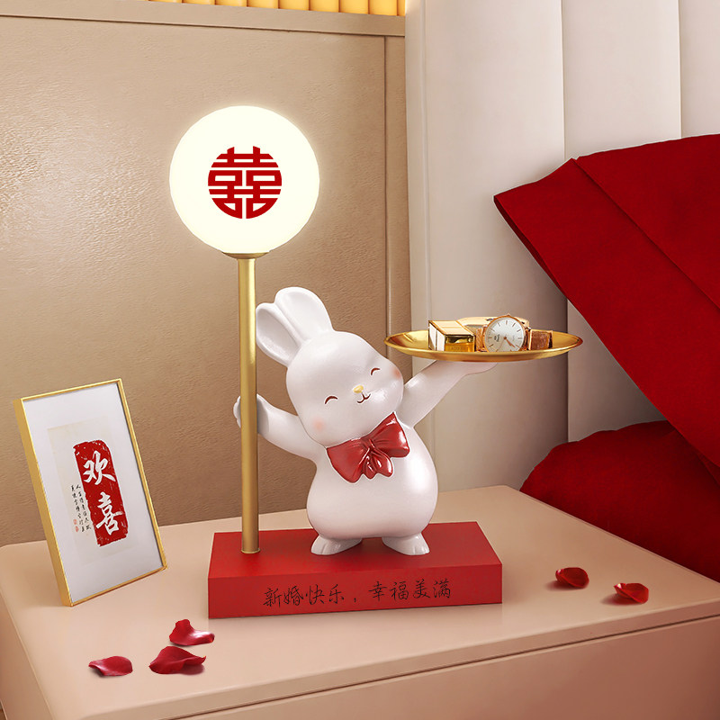 兔子装饰台灯卧室床头灯少女书桌氛围小夜灯创意结婚生日礼物摆件