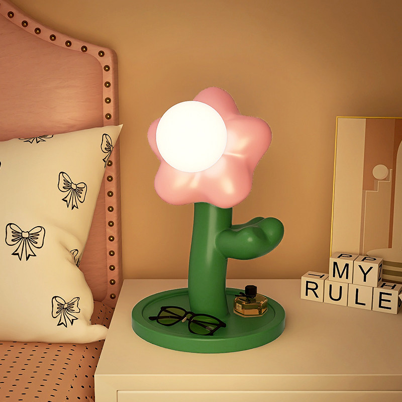 创意花花收纳台灯卧室ins风少女床头灯浪漫温馨高级感氛围灯夜灯
