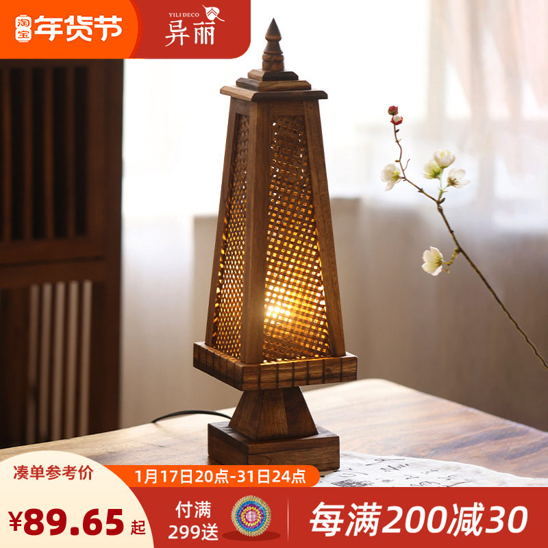 东南亚风格台灯泰国竹编灯复古卧室床头灯创意仿古中式落地氛围灯