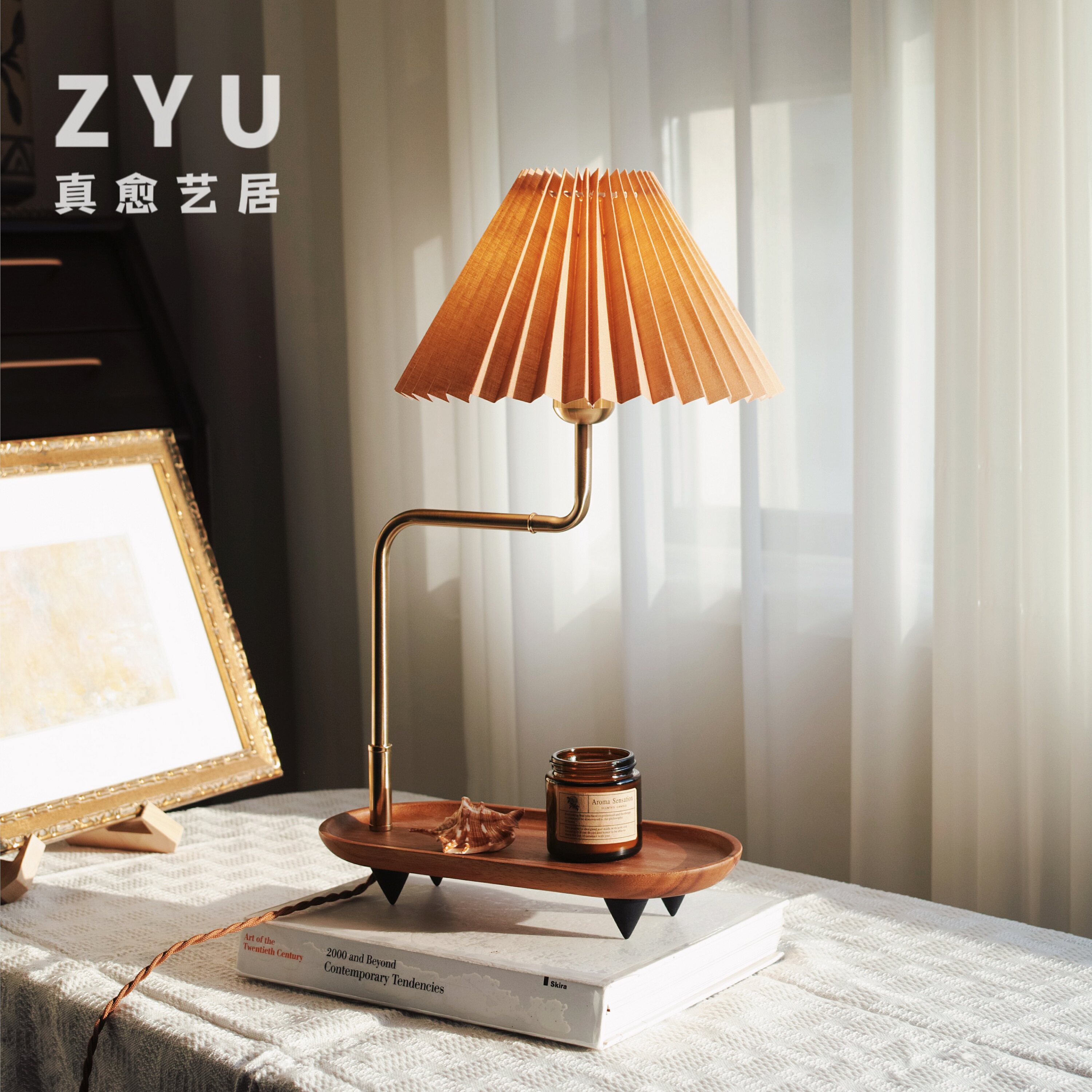 ZYU真愈 vintage包豪斯实木复古创意百褶台灯 民宿卧室氛围收纳盘