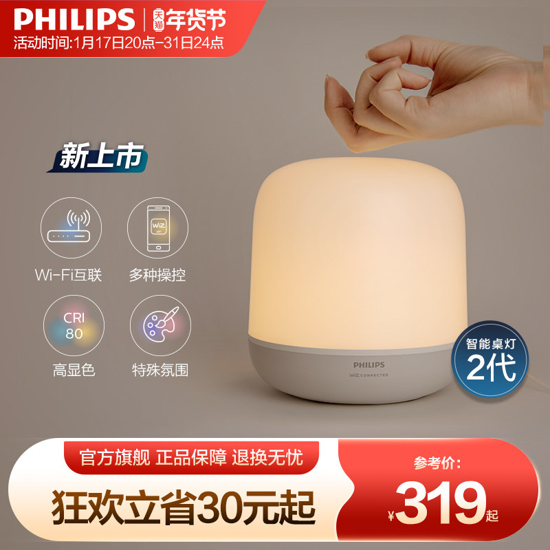 飞利浦智控台灯卧室床头灯桌灯ins现代简约创意天猫精灵宿舍氛围