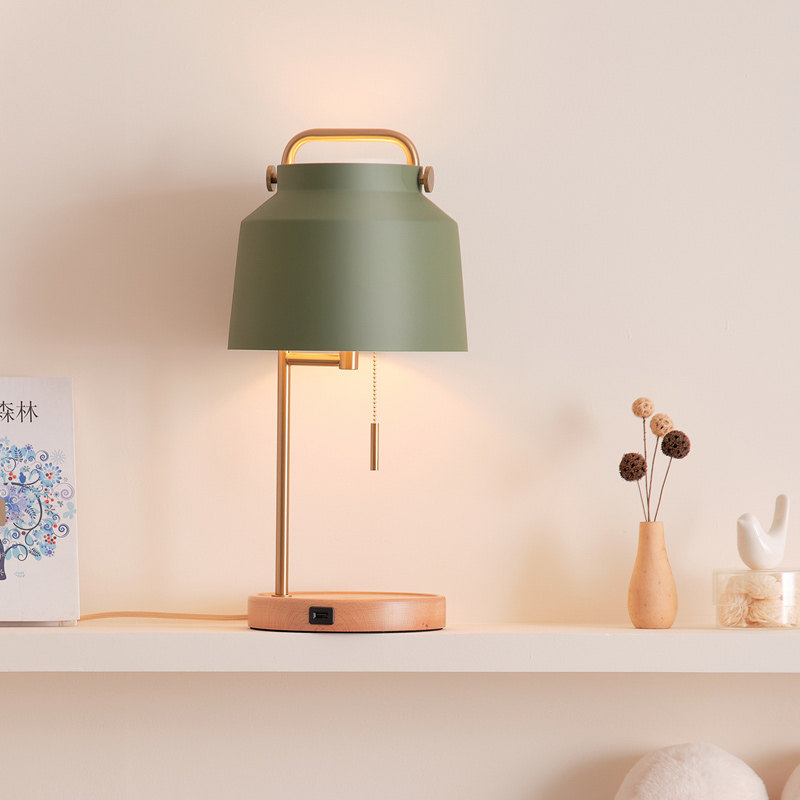北欧无线充电台灯卧室奶油风ins少女创意实木护眼装饰氛围床头灯