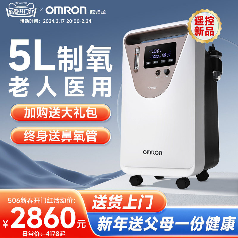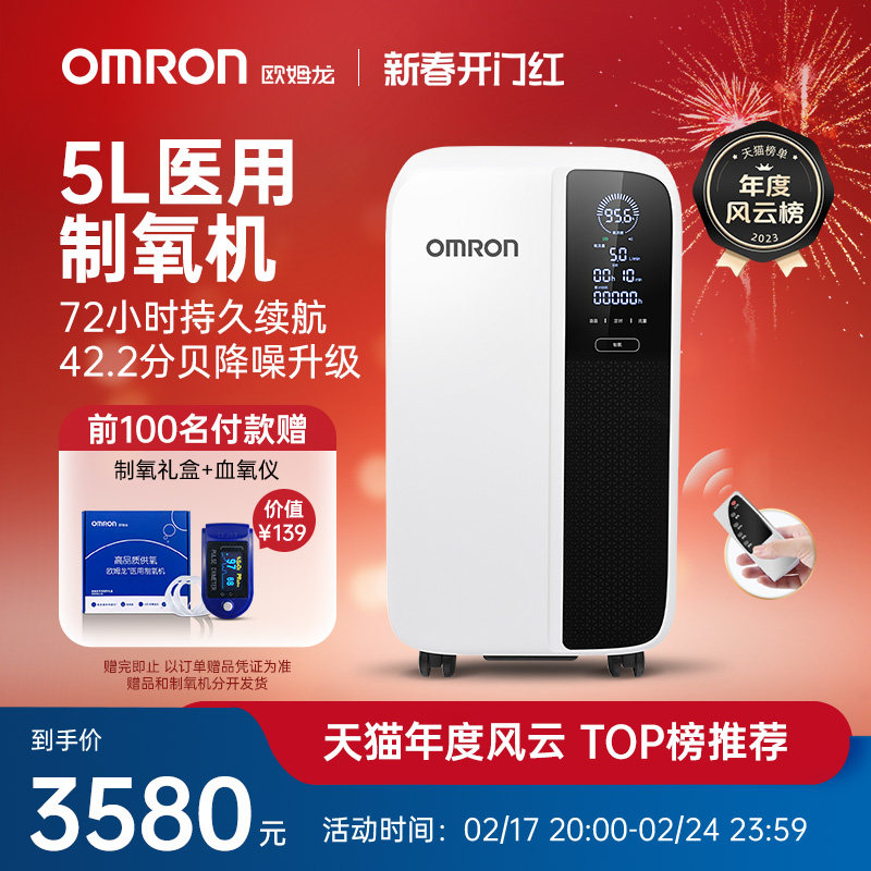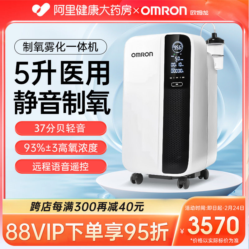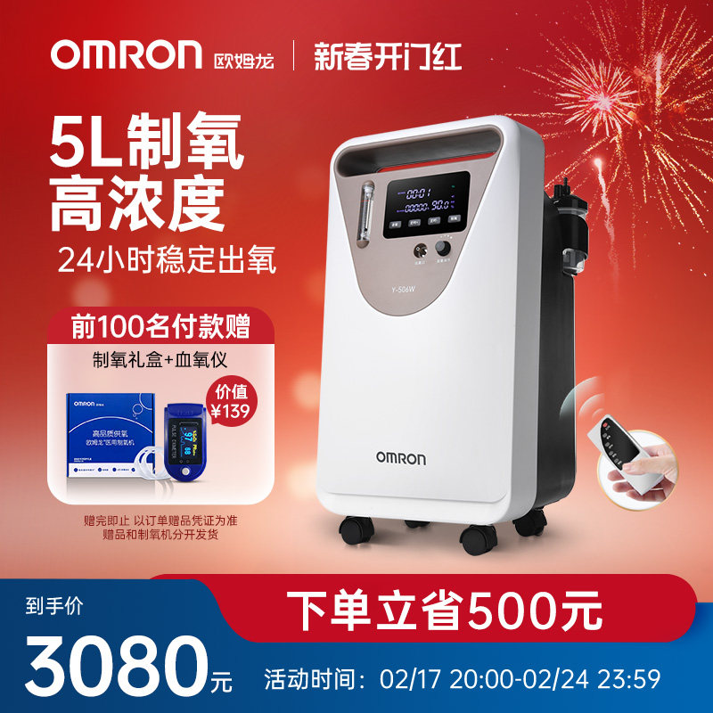 欧姆龙智呼吸医用5L制氧机家用老人孕妇肺气肿吸氧机血氧仪511W