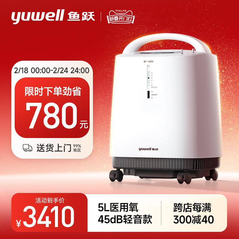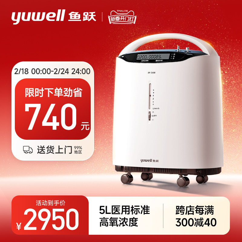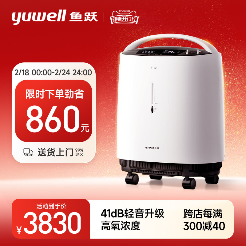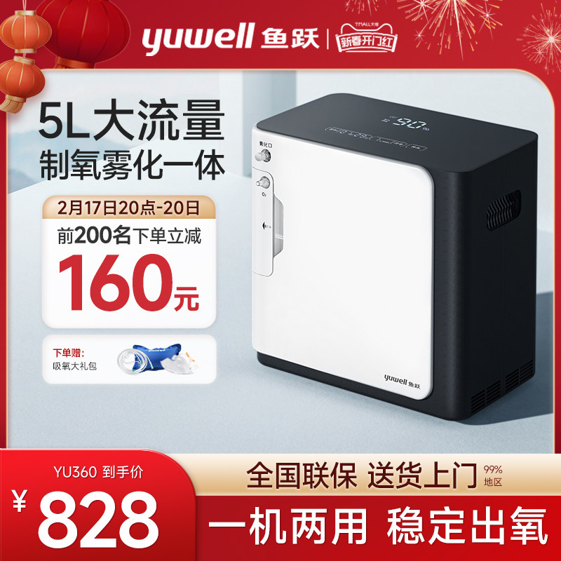鱼跃制氧机氧气机L便携5升医用型官方旗舰店制氧仪家用老人吸氧机