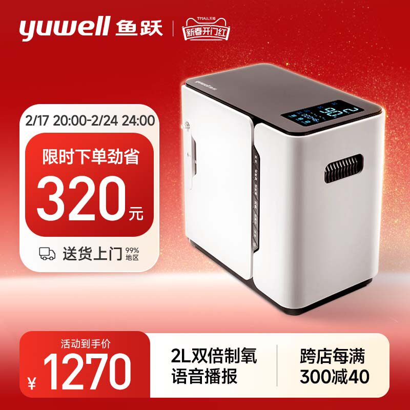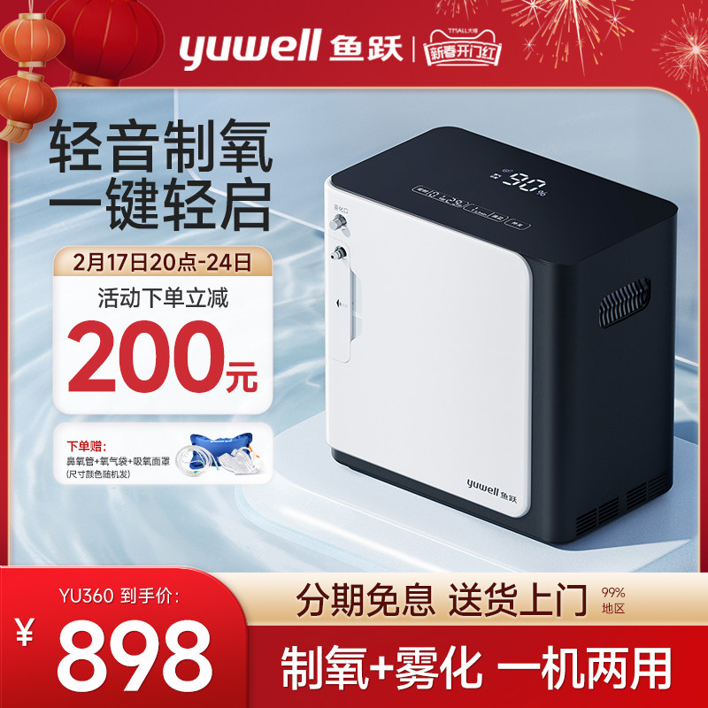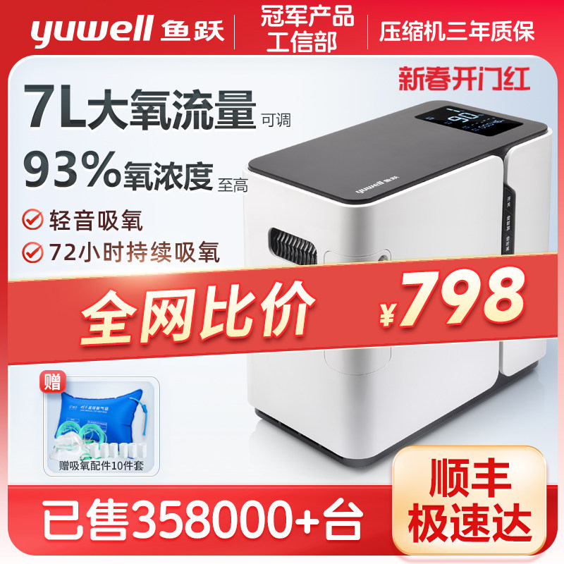 鱼跃制氧机家用吸氧机老人吸氧机小型家庭便携车载孕妇老人氧气机