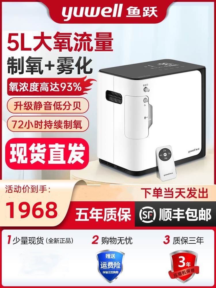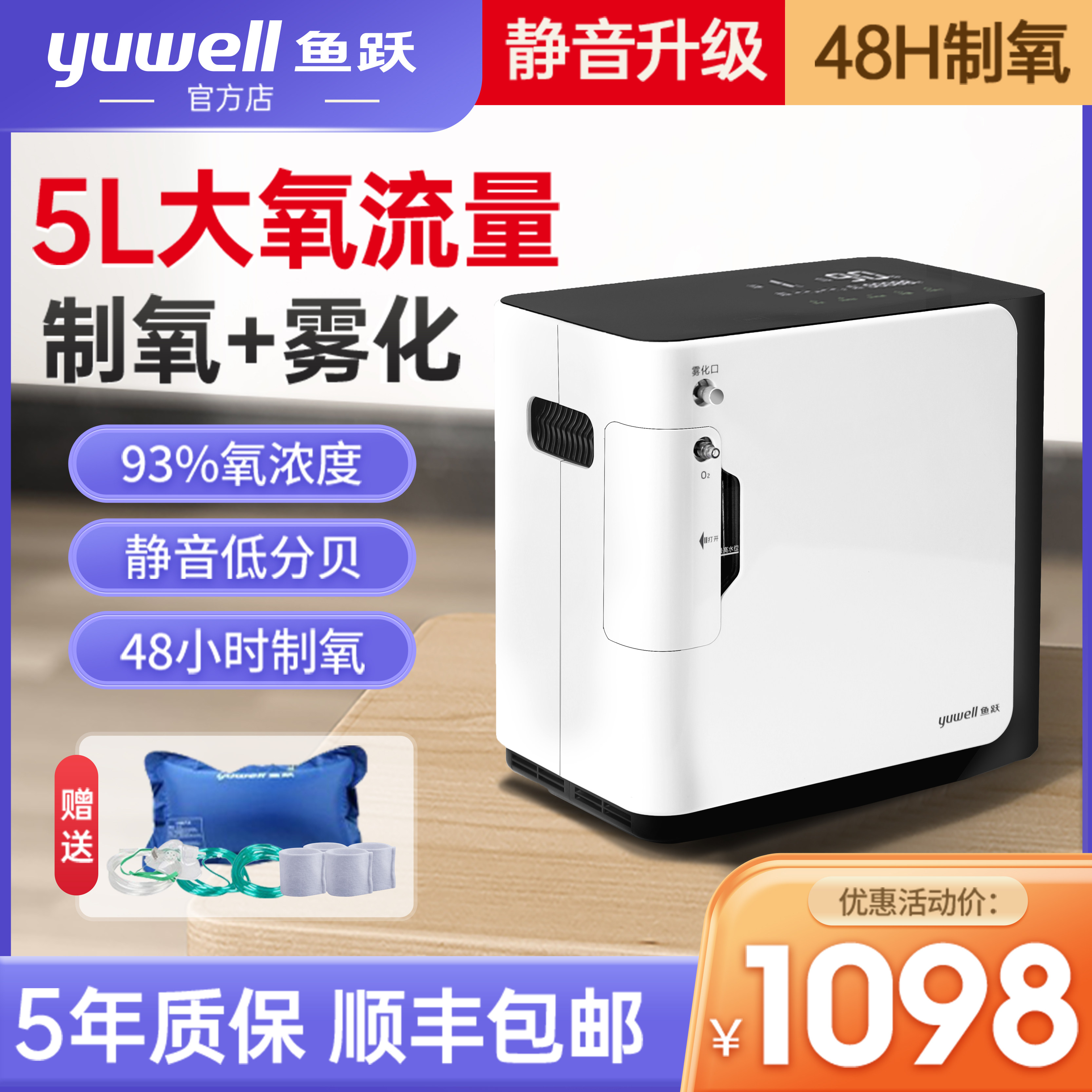 鱼跃牌制氧机5升L家用老人孕妇吸氧机官方旗舰店雾化小型氧气机