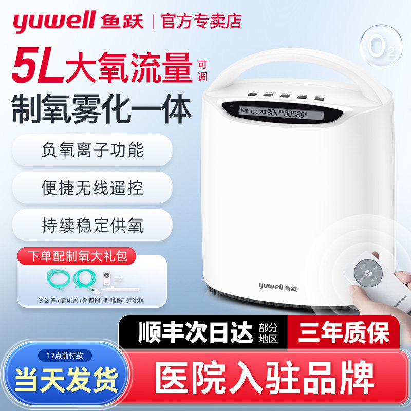 鱼跃制氧机家用老人吸氧氧气机孕妇专用车载带雾化保健氧呼吸