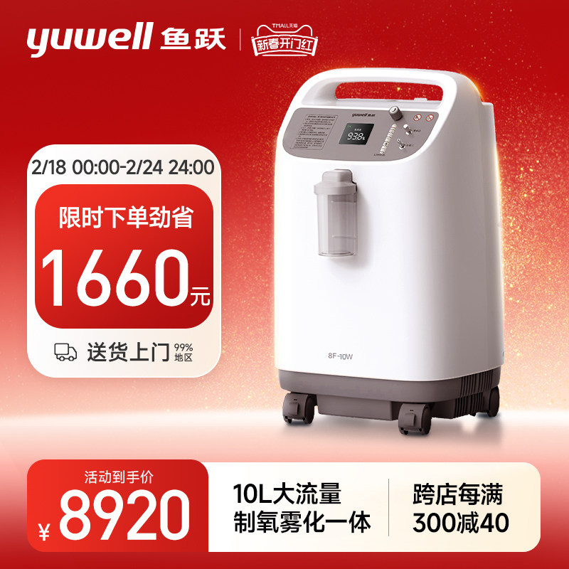 鱼跃制氧机10L升医用吸氧机90%高氧浓度老人家用氧气机雾化一体
