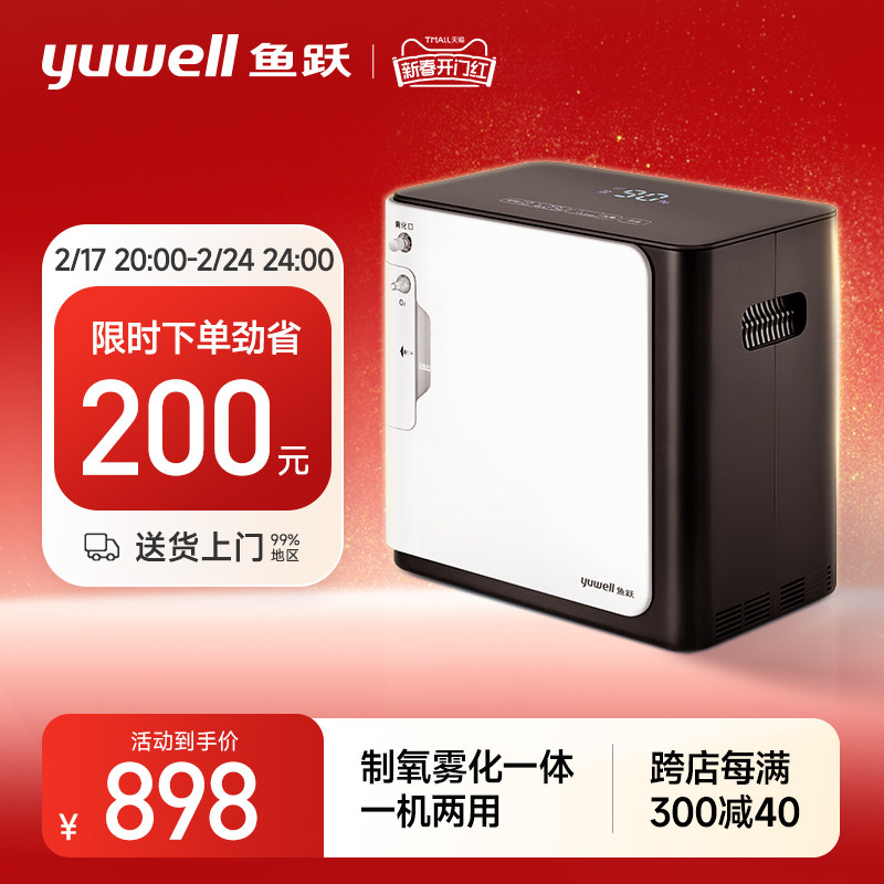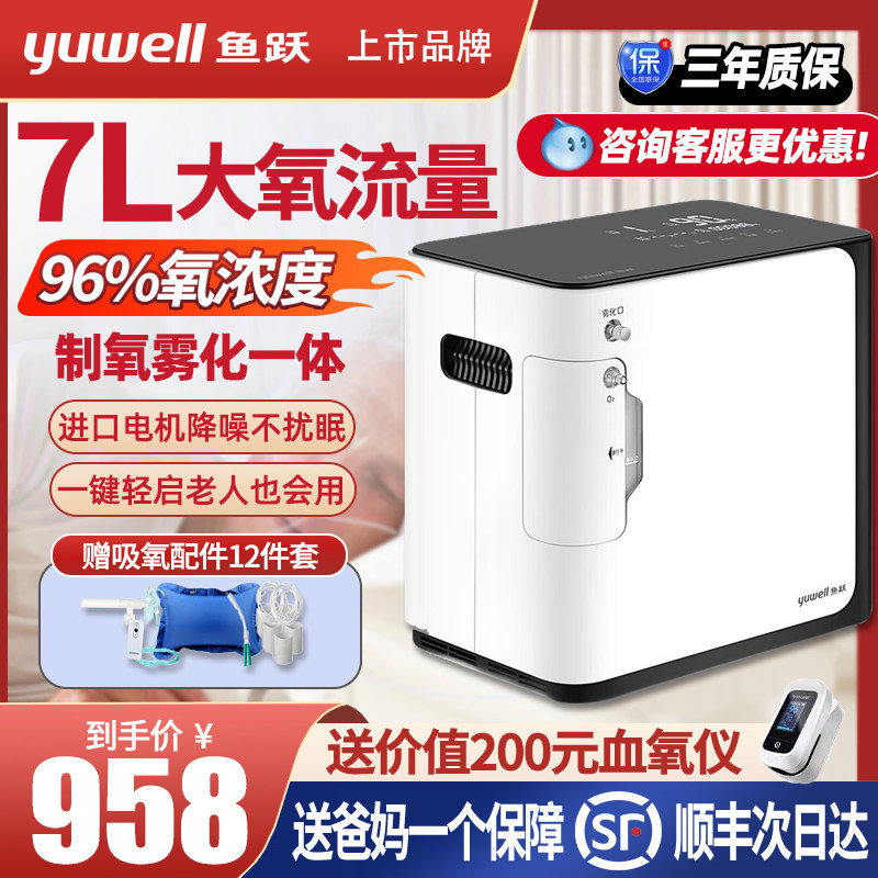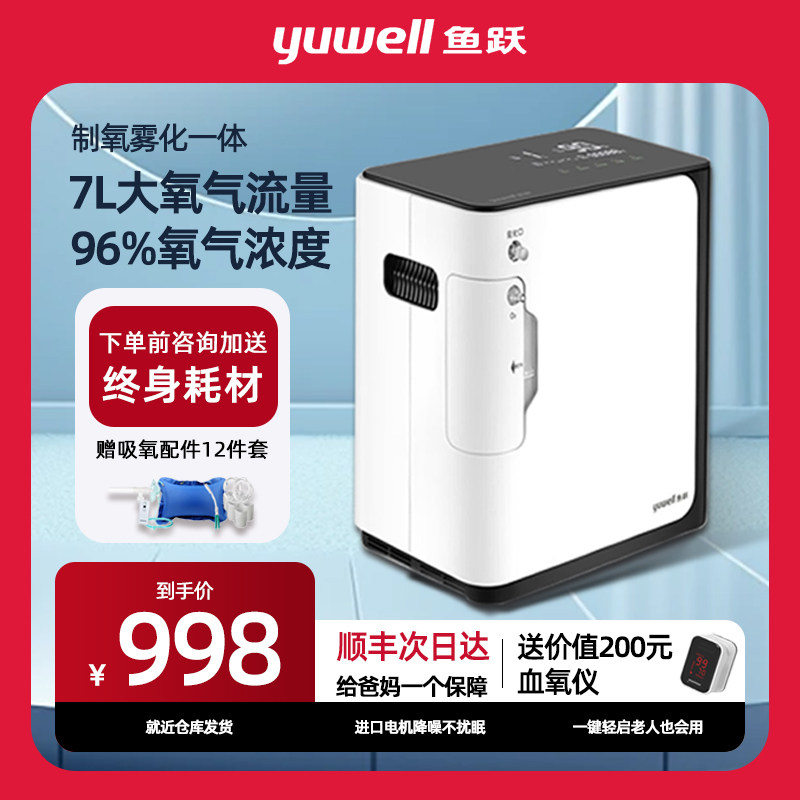 鱼跃制氧机家用吸氧机老人孕妇便携式小型氧气机7L制氧雾化一体机