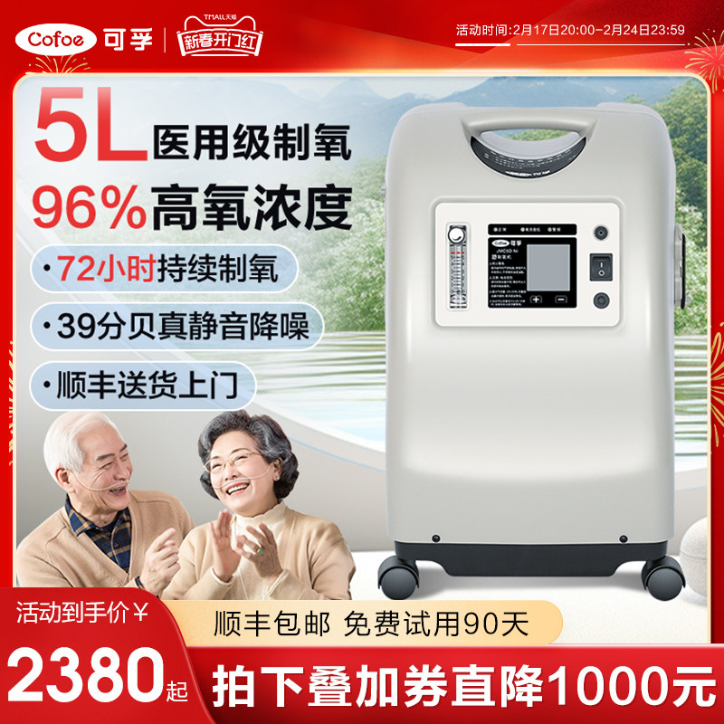 可孚家用制氧机老人医用5L升浓度90%小型家庭式雾化氧气机吸氧机