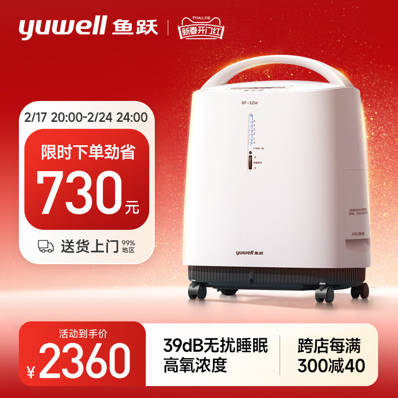 鱼跃制氧机家用吸氧机老人医用级3L氧气机雾化家庭吸氧器8F-3ZW
