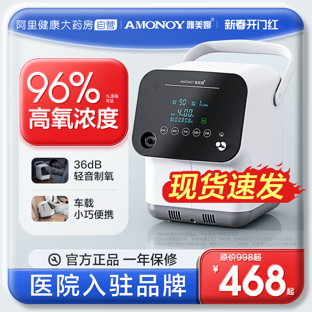 雅美娜吸氧制氧机老人孕妇家庭雾化一体高原车载便携式氧气呼吸用