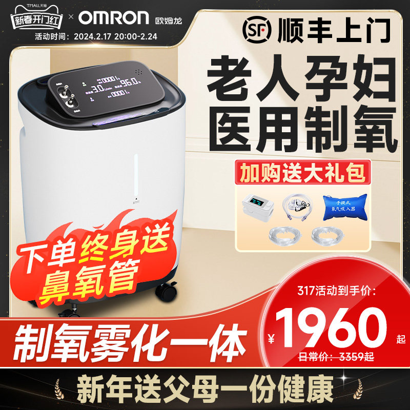 【自营】欧姆龙制氧机家用3L吸氧机呼吸机老人孕妇吸氧器雾化一体