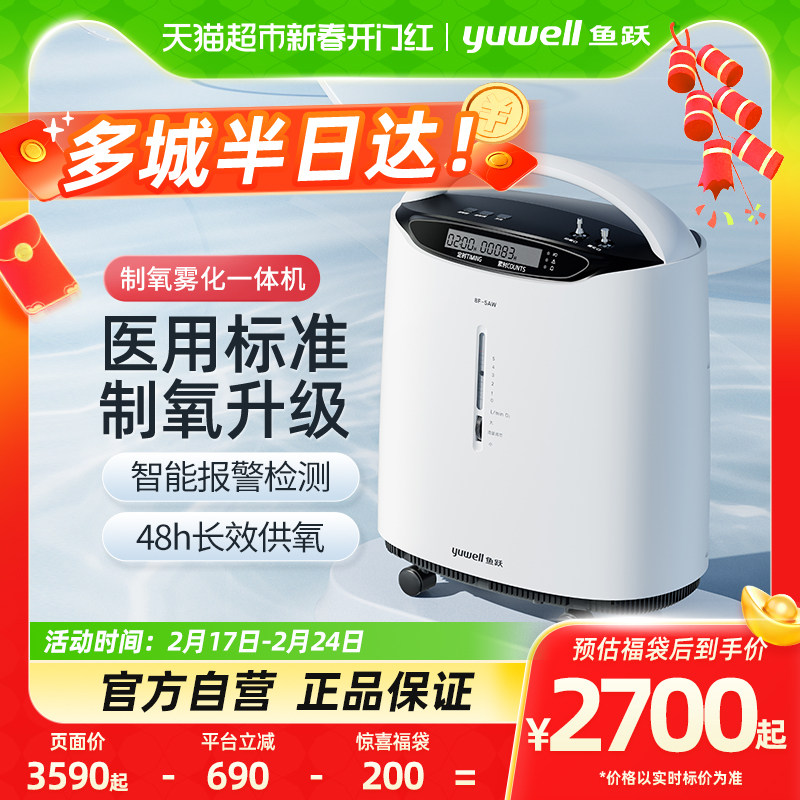 鱼跃制氧机家用吸氧机老人医用3L升浓度90%小型家庭式雾化氧气机