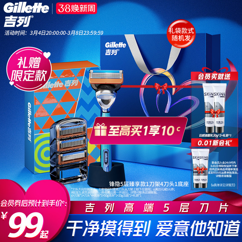 吉列锋隐5层臻享款手动剃须刀非吉利男士5层刀片刮胡刀送男友礼盒